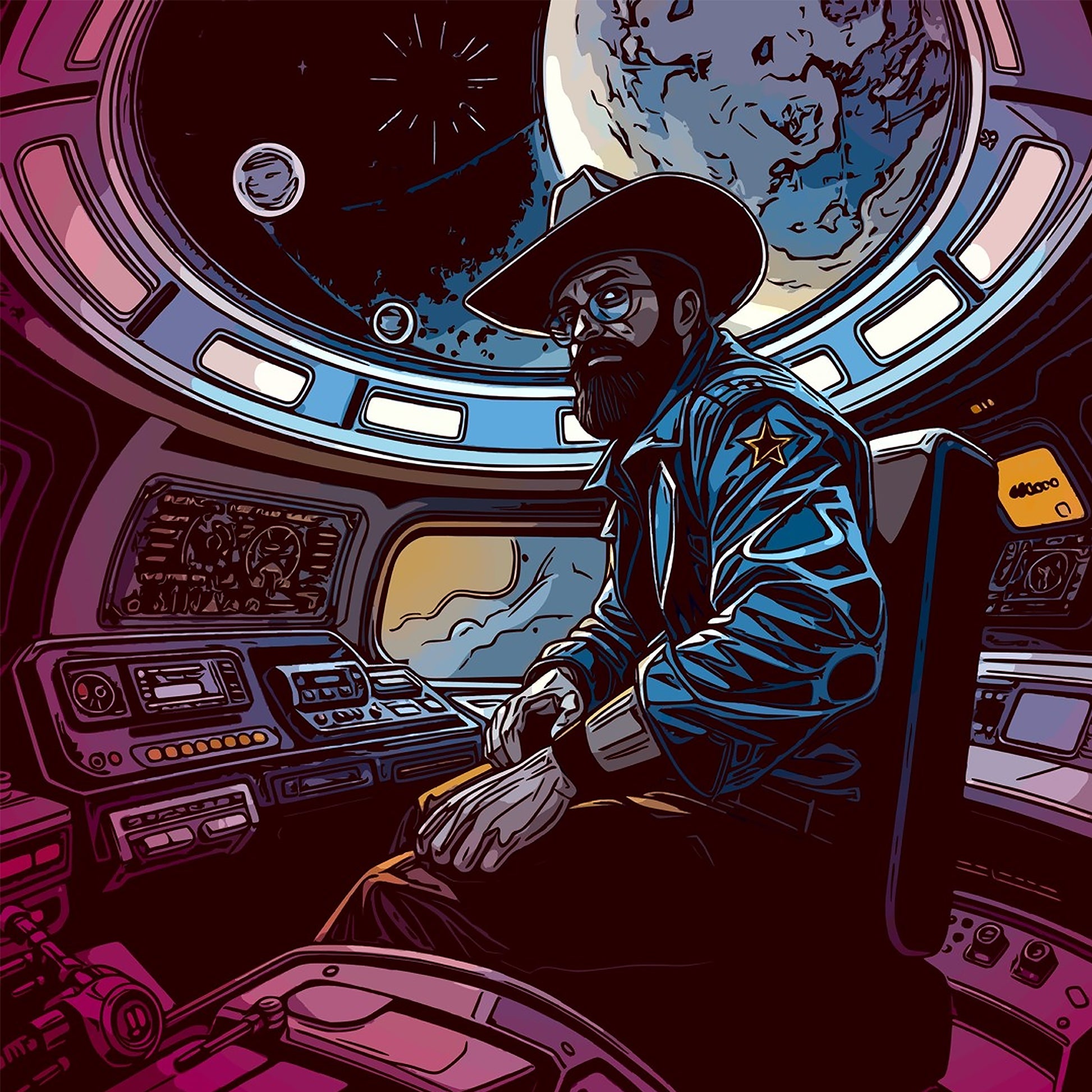 Saddle up for interstellar adventure with our Galactic Drifter Unisex Crewneck Sweatshirt, featuring a striking custom illustration of a space cowboy roaming the cosmic frontier. Drifting between galaxies with a hat tipped low and a six-shooter at his side, this lone rider embodies the fearless fusion of the Wild West and the great beyond.